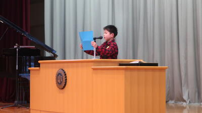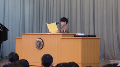 また、児童代表の言葉として、2年生の児童が、2学期の生活を振り返り、新たな目標に向けて決意をのべました。