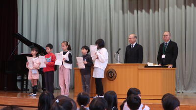 最後に、多くの舟戸っ子の表彰がありました。「アイデム写真コンテスト」・「児童生徒科学振興展覧会」・「私たちの自然を守ろうコンクール作文部門」、「校内時間走記録会」、「荒川図画コンクール」の5つです。
