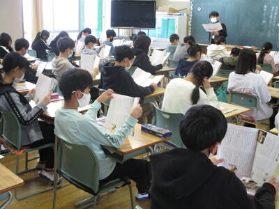 2年生の学級活動では、クラスで行う今年度の最後の会のタイトルを決めていました。