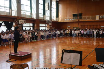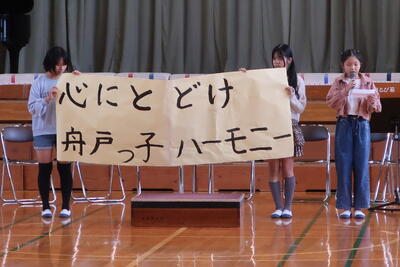 音楽集会 投稿: 舟戸小学校 (10/29) 音楽集会がありました。 音楽会に向け、児童会の児童から、今年度の舟戸っ子コンサートのテーマの発表がありました。「心にとどけ、舟戸っ子ハーモニー」です。その後、全体合唱の「ミュージック」を歌いました。指揮とピアノの伴奏は、6年生の児童が立派に行いました。 来週末はいよいよ舟戸っ子コンサート本番です。心を一つにして、素晴らしいハーモニーを響かせてほしいです。